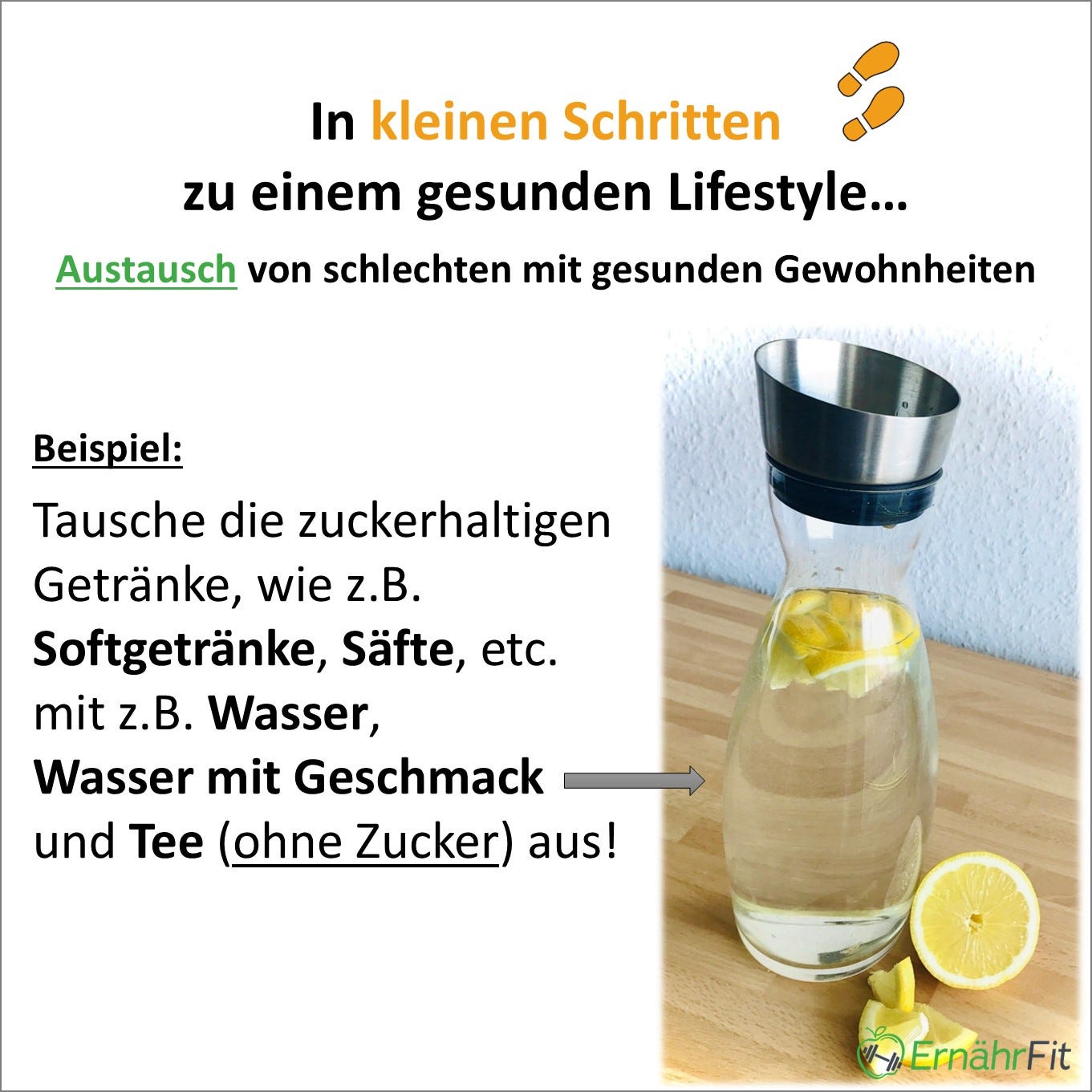 Wichtig ist immer der erste Schritt. Der Start in die Umsetzung! Austauschen ist eine der Möglichkeiten, seine Gewohnheiten langsam und positiv zu verändern.