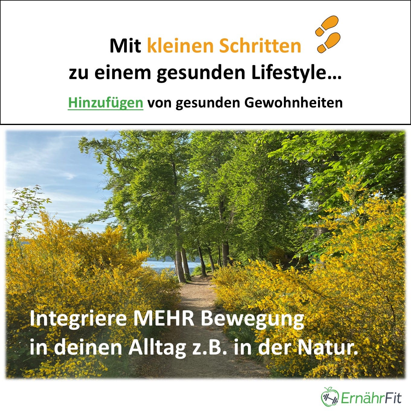 Eine wunderbare Möglichkeit ist das HINZUFÜGEN von einer neuen Gewohnheit in deinen Alltag. Das bedeutet, dass du dich lediglich darauf konzentrierst, eine oder auch zwei neue gesunde Gewohnheiten in deinen Alltag zu integrieren, ohne etwas anderes zu verändern.